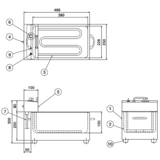 商品の仕様●1槽式バスケットタイプ●油量8リットル●電気容量1φ100V:1.4kw●定格最大電流 (A):14.0●接続法リード線2mプラグ付:接地2P-15A●外形寸法(mm):前幅250×奥行466×高さ300●バスケット付※商品画像はイメージです。